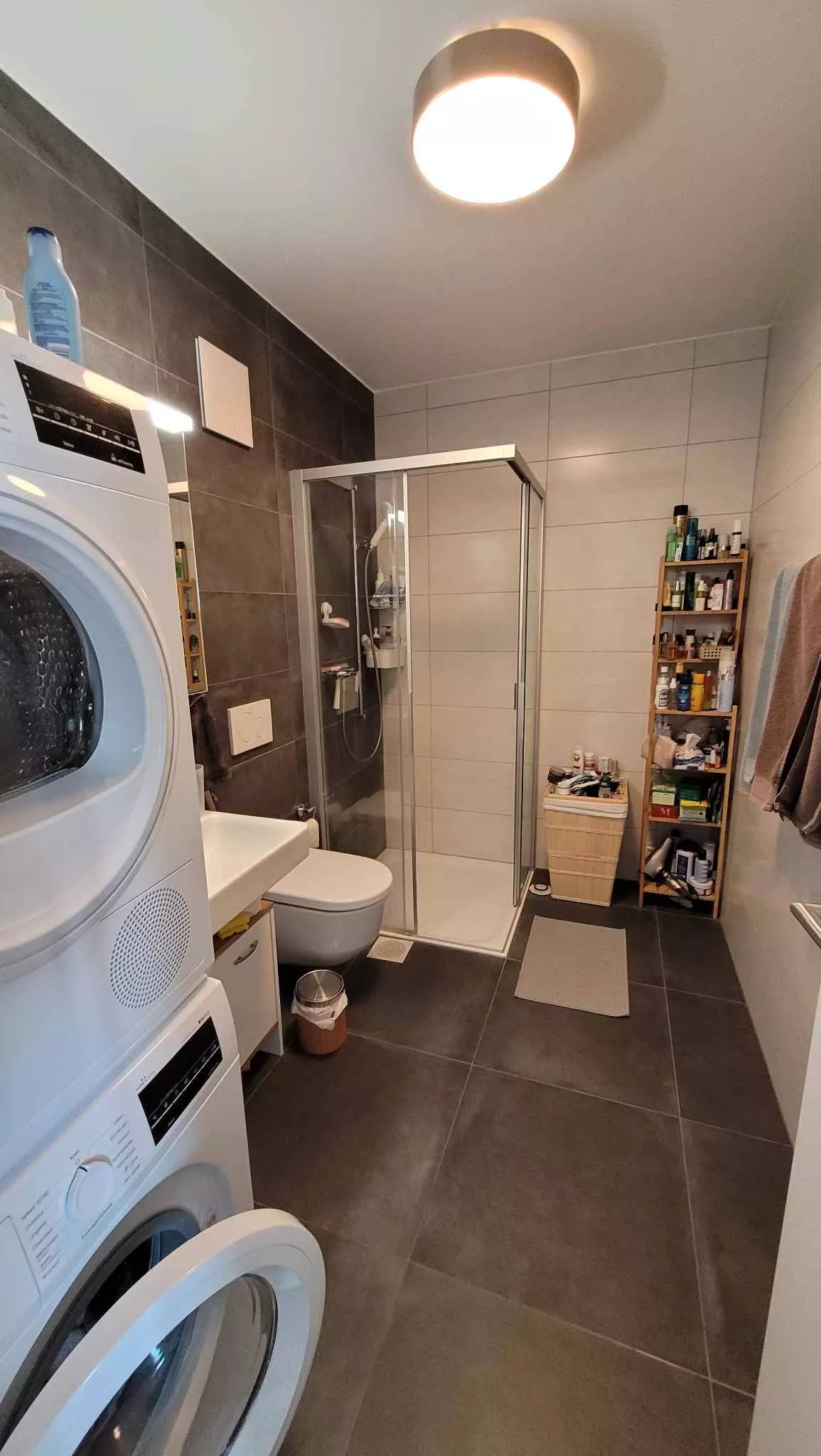 – une salle-de-douche/WC avec lave-linge/sèche-linge