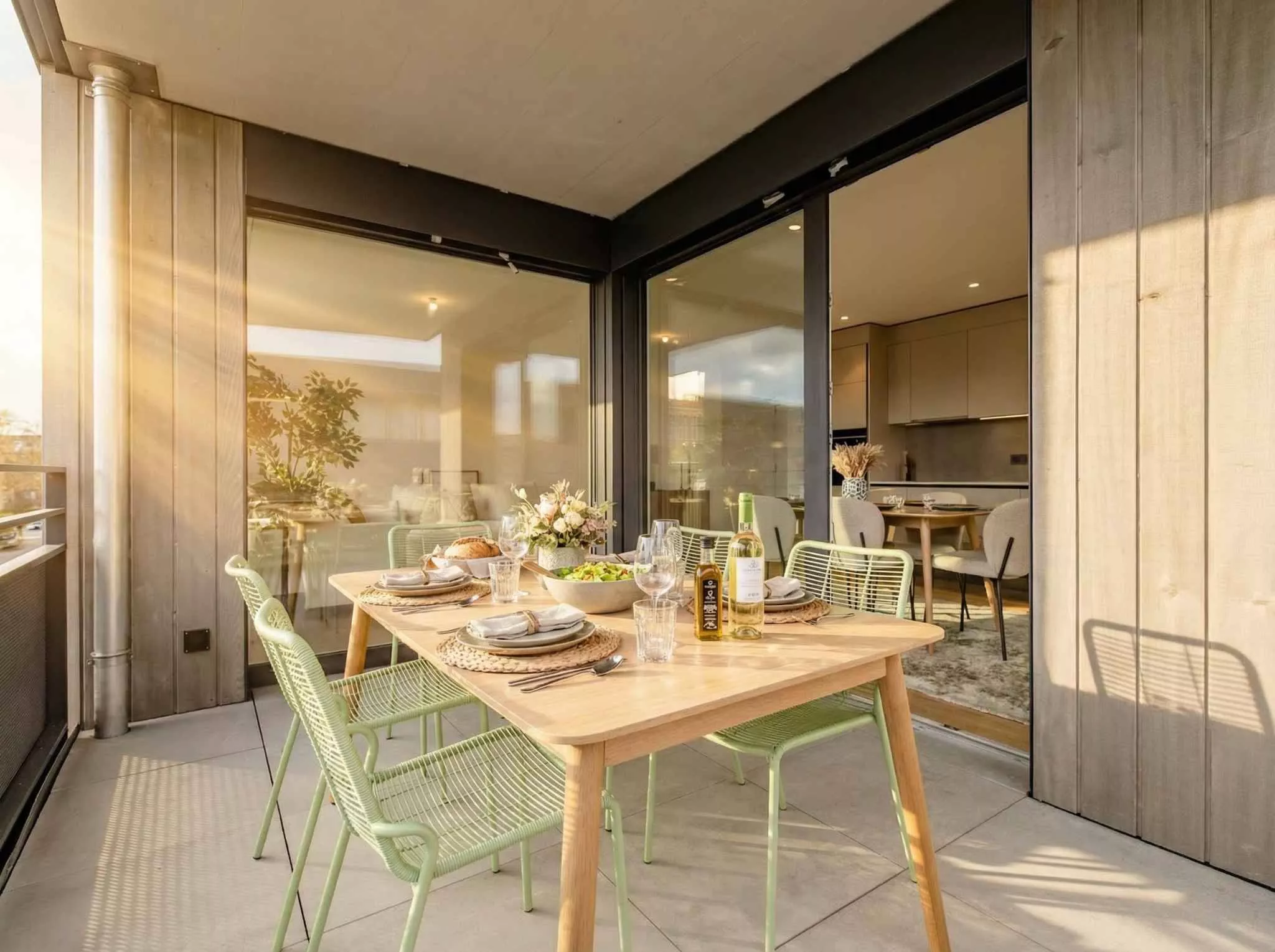 • d’un séjour spacieux avec cuisine ouverte et loggia (certains appartements en rdc ne disposent pas de loggia)