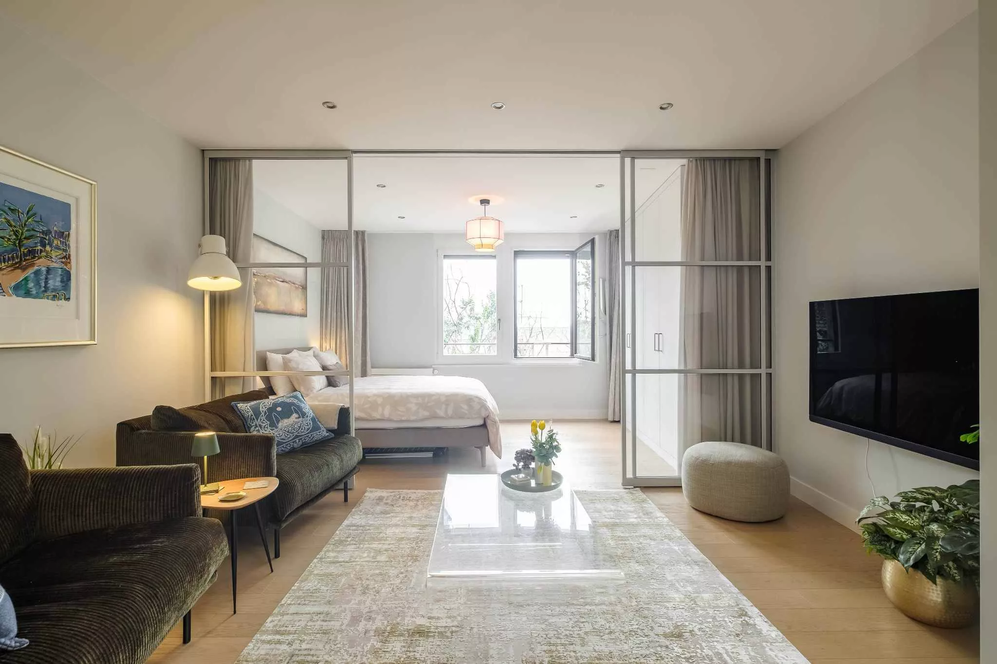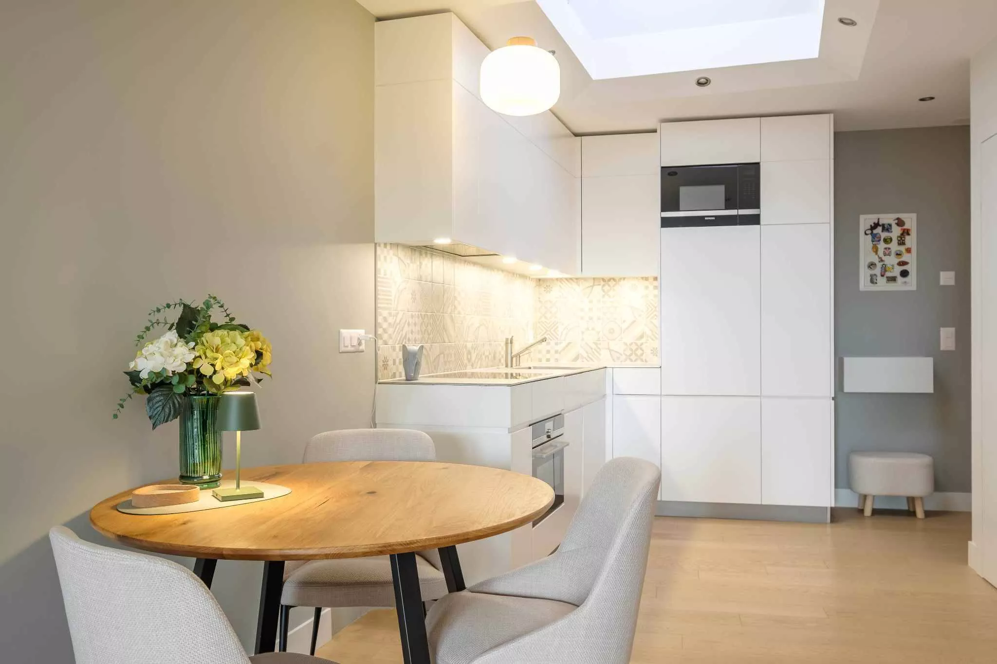 L’appartement a bénéficié d’une rénovation complète réalisée avec des matériaux de standing en 2019. Il se compose comme suit: entrée avec vestiaire, cuisine enitèrement équipée avec lumière zénithale automatique ouverte sur le séjour, chambre à coucher avec bibliothèque murale, salle de douche complète avec colonne de lavage aini que des toilettes séparées avec lave-mains.