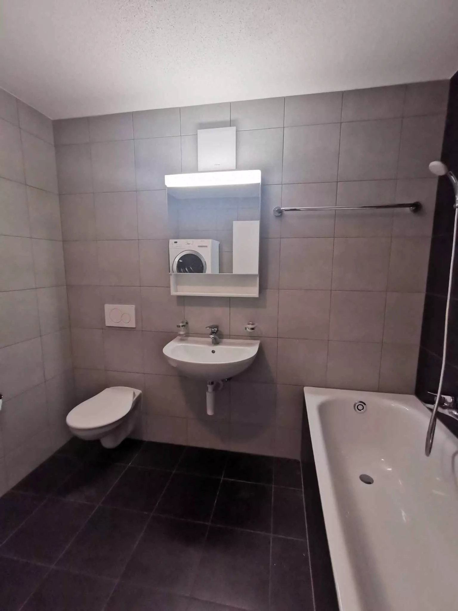 – une salle de bains/WC avec colonne de lave et sèche-linge