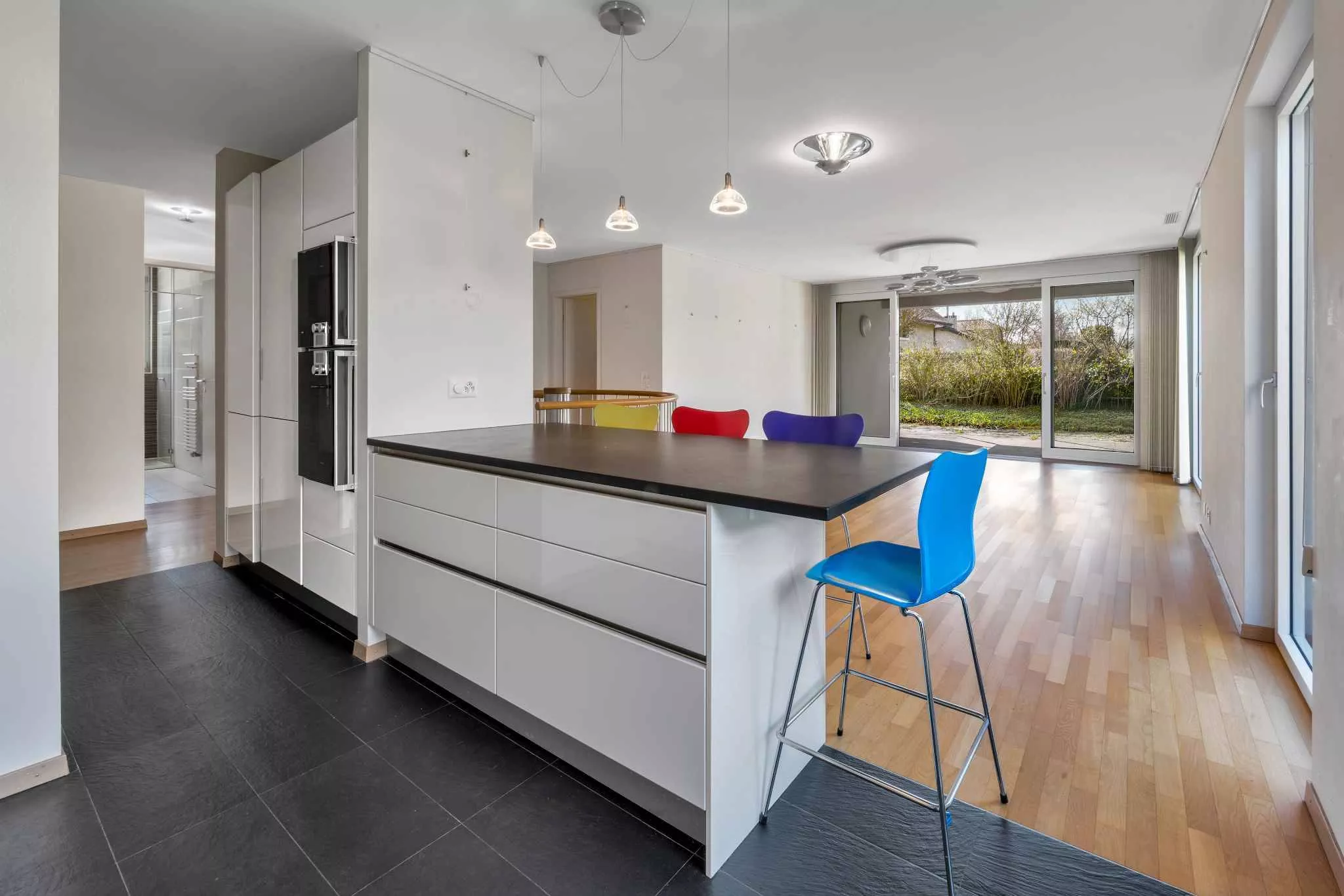 L’appartement est vendu avec trois places de parking en sous-sol, comprises dans le prix.