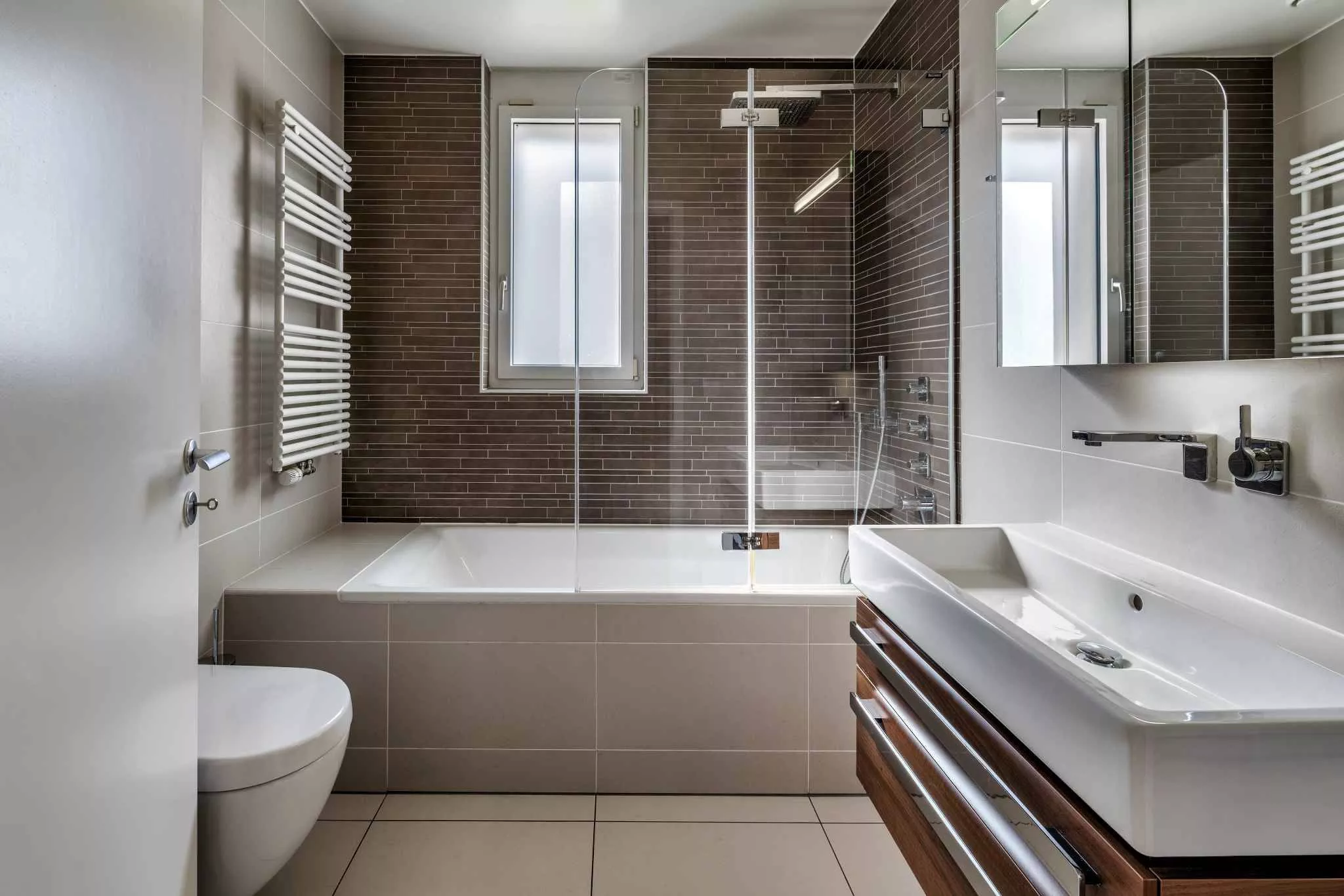 Le niveau inférieur propose une grande pièce polyvalente pouvant servir de salle de jeux ou de salle de sport, une salle de douche complète, une cave ainsi qu’un accès extérieur direct au parking souterrain.