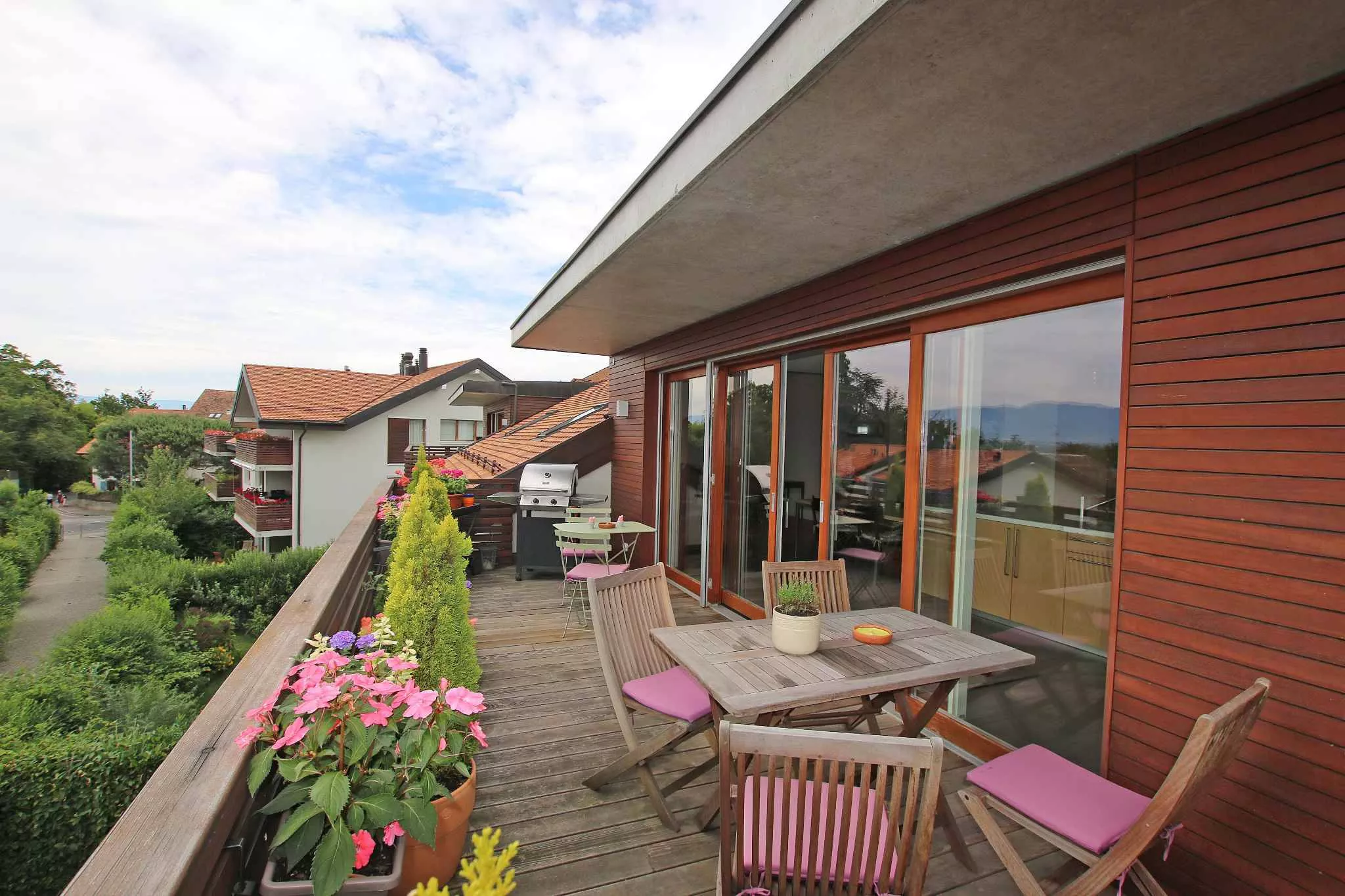 Situé au cœur du village d’Anières, ce spacieux appartement de neuf pièces dispose de nombreux atouts et offre des espaces généreux.