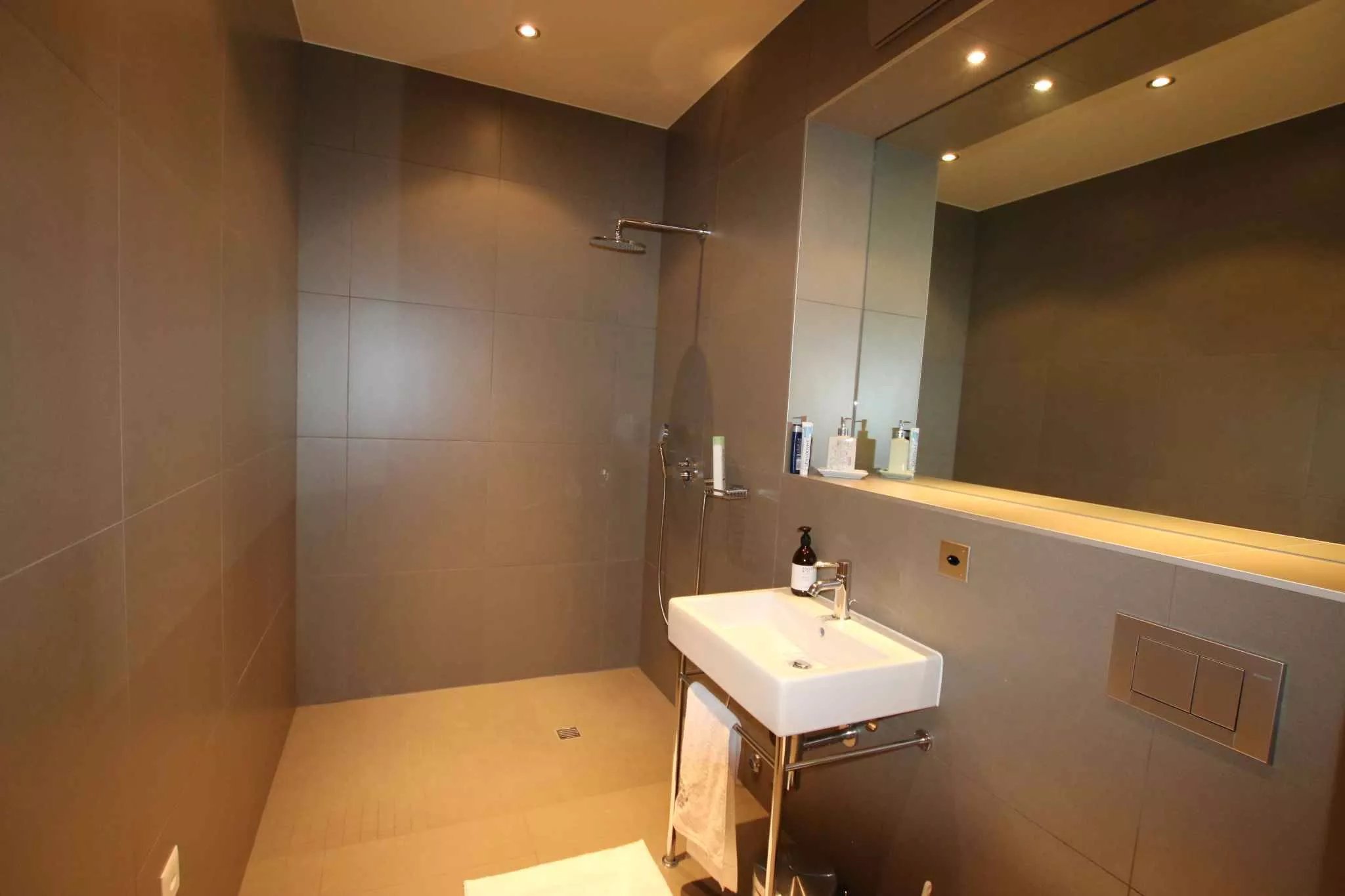 La partie nuit quant à elle se décline de deux chambres à coucher, une salle de douche avec toilettes, un espace buanderie, une chambre à coucher avec salle de douche attenante, une salle de bains avec toilettes, ainsi qu’une chambre à coucher principale avec son dressing et sa salle de bains complète.