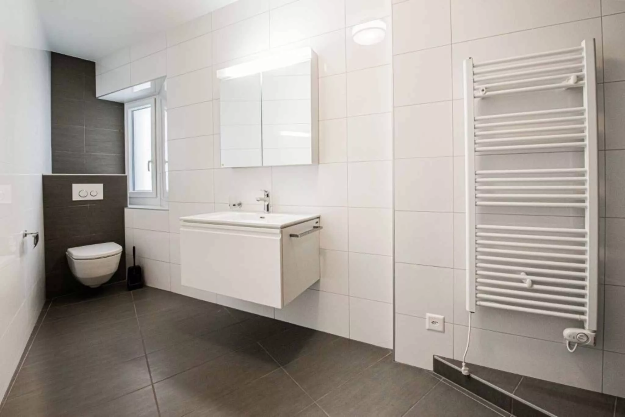 Ces appartements ont été entièrement rénovés entre 2014 et 2016, tout comme la cage d’escalier. Ils sont équipés de thermostats pour le chauffage au sol ainsi que de colonne de lave et sèche-linge. Les cuisines sont totalement équipées avec des appareils de standing comprenant plan de cuisson à induction, lave-vaisselle, four, etc.