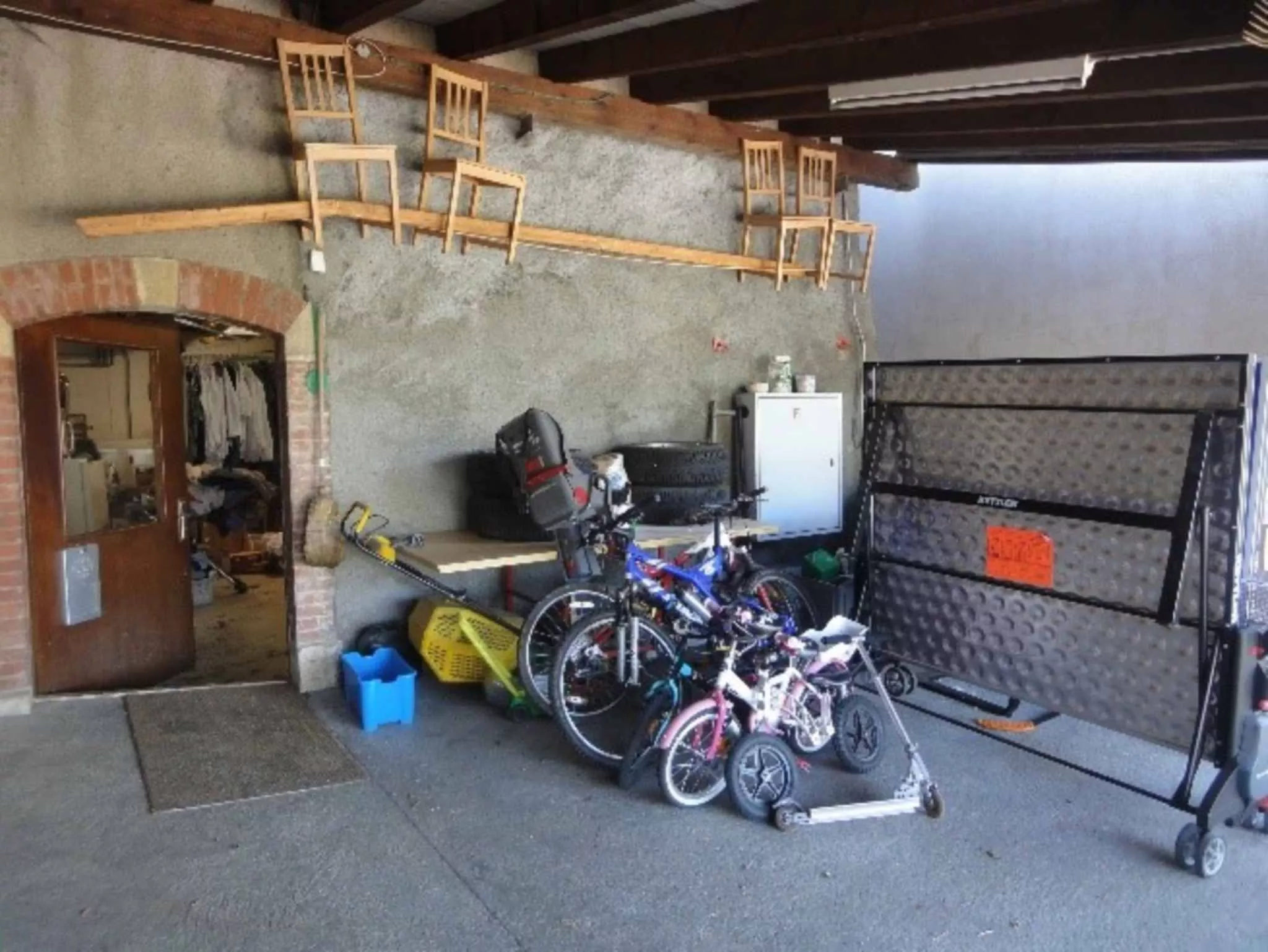 Un couvert, en commun avec l’autre lot, est également disponible (pour moitié) afin d’y stocker du matériel, vélos et autre. On y accède par une rampe d’accès avec un portail.